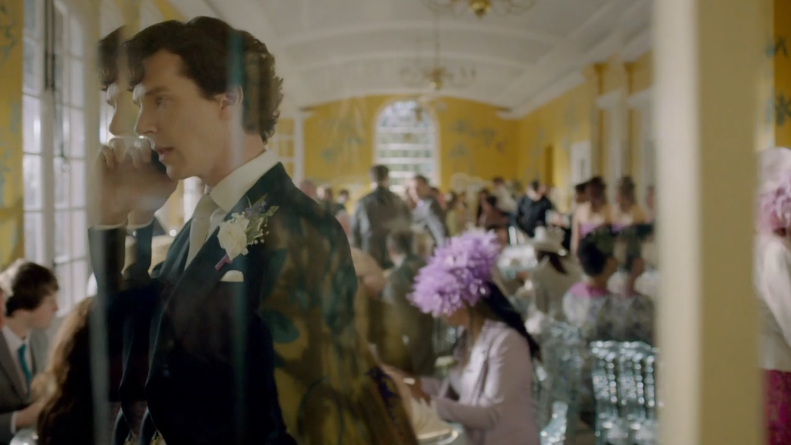 Return to All About the Wallpaper: An Interview with Production Designer Arwel Wyn Jones Sherlock, “The Sign of Three”: The glass rig between the camera and Sherlock Screen Shot 2016-01-17 at 3.42.51 PM Dimensions: 2548 × 1434